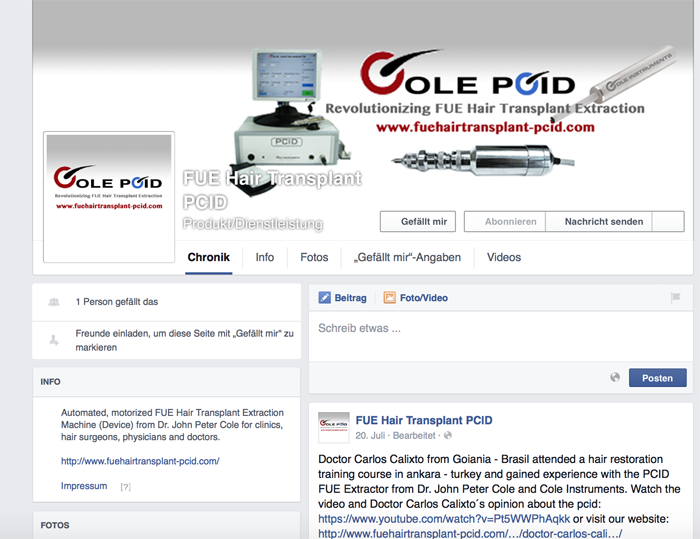 - Creating Facebook-Site: https://www.facebook.com/fuehairtransplantpcid