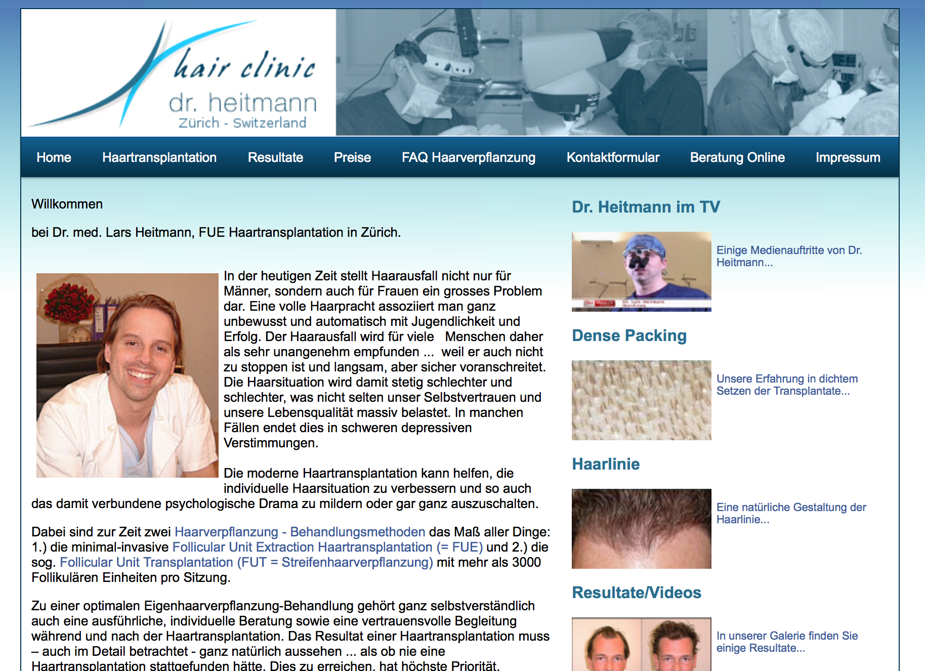 - Creating websites: https://www.fue-haartransplantation.ch/en/ or https://www.dr-heitmann.com